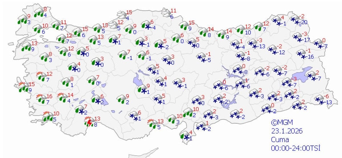 Meteoroloji’nin son değerlendirmelerine göre yurt genelinde soğuk hava etkisini artırırken, cuma günü birçok il için kuvvetli kar ve sağanak yağış uyarısı yapıldı; İstanbul, Ankara ve İzmir’de beklenen hava durumu da netleşti.