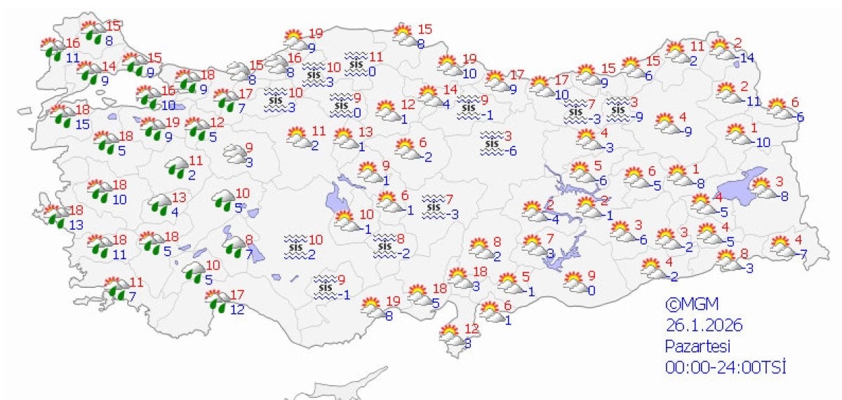 Meteoroloji Genel Müdürlüğü’nün tahminlerine göre yurt genelinin parçalı ve çok bulutlu, Batı Karadeniz kıyıları dışında kalan tüm bölgelerin yağışlı geçmesi bekleniyor.