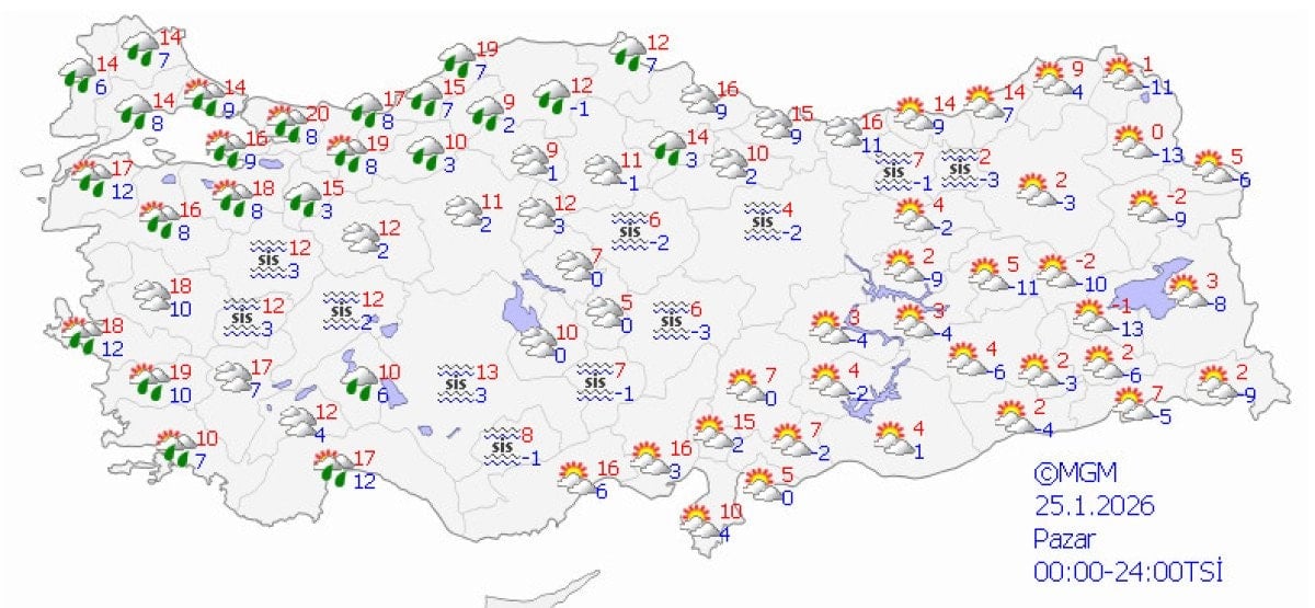 Gece ve sabah saatlerinde iç ve doğu bölgelerde buzlanma ve don olaylarıyla birlikte pus ve yer yer sis beklenirken, Doğu Karadeniz’in iç kesimlerinin yüksekleri ile Doğu Anadolu’nun doğusunda yüksek kar örtüsüne sahip eğimli alanlarda çığ tehlikesi bulunuyor.